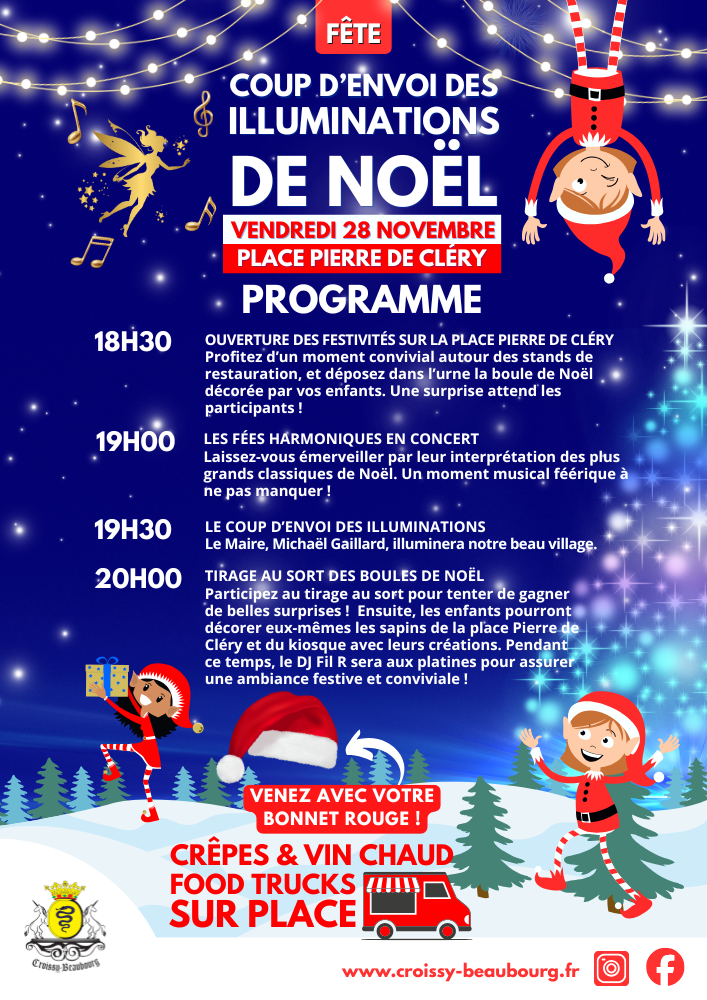 Venez célébrer le lancement des illuminations de Noël lors d’une soirée festive et féérique, entourés de joyeux lutins ! Les Fées Harmoniques chanteront les grands classiques de Noël, dans une ambiance conviviale avec vin chaud et délices des food trucks.
