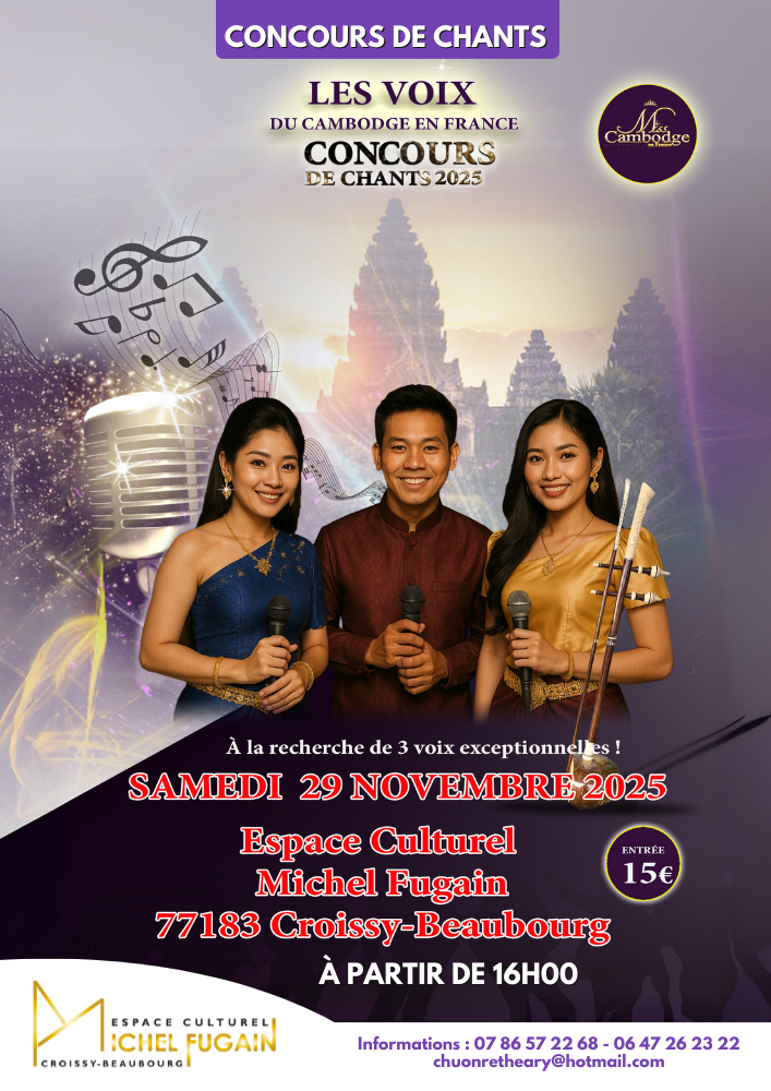 Cet évènement unique, placé sous le signe du rayonnement de la culture khmère, sera une véritable célébration de l’héritage musical et artistique du Cambodge. À travers les voix des candidats, c’est toute une histoire, une identité et une fierté culturelle qui résonneront sur scène.