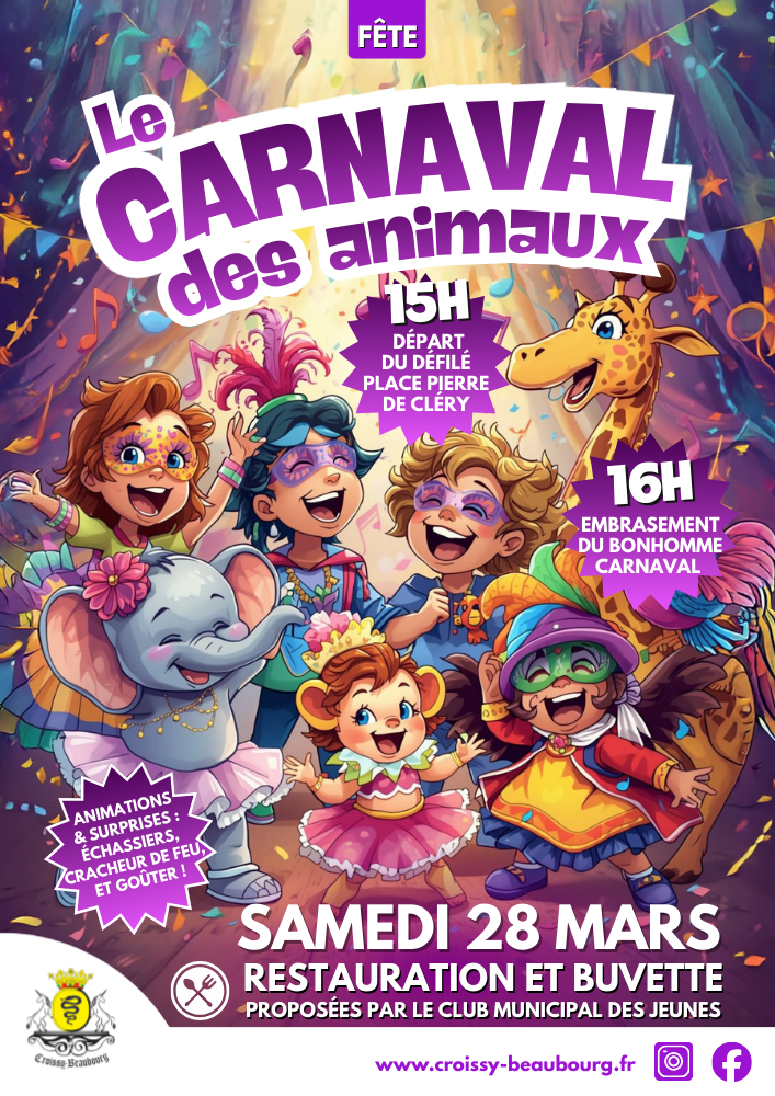 Rendez-vous samedi 28 mars à 14h30 sur la place Pierre de Cléry pour un après-midi inoubliable ! Venez déguisés sur le thème des animaux et découvrez les nombreuses surprises et animations qui vous attendent !