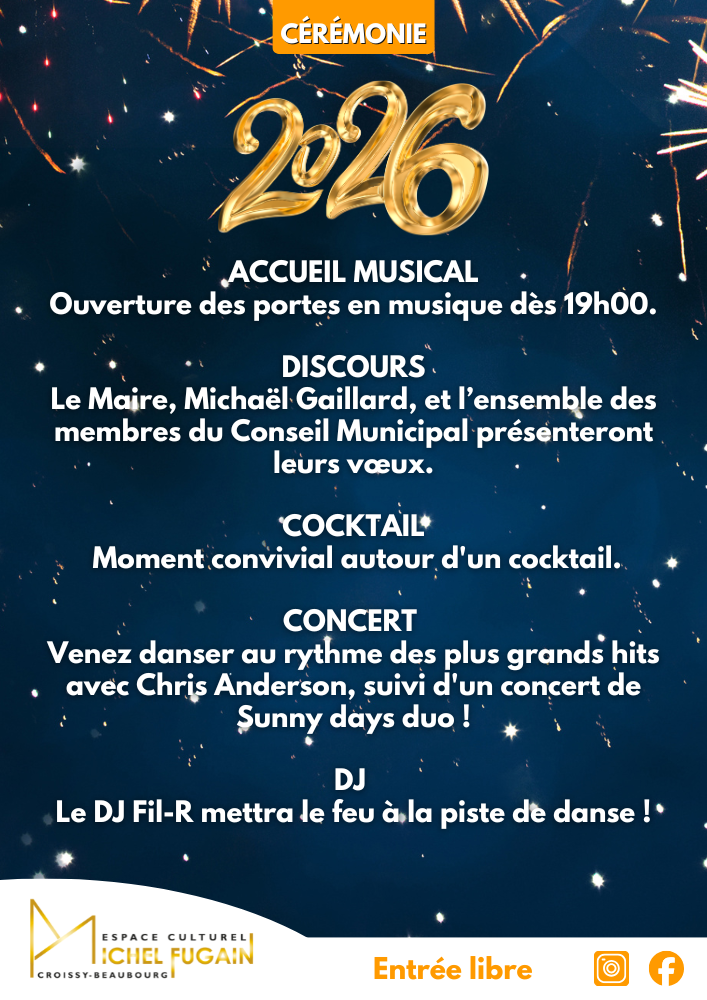 Michaël Gaillard, Maire de Croissy-Beaubourg, et l’ensemble des membres du Conseil Municipal ont le plaisir de vous inviter à la cérémonie des vœux du maire pour la nouvelle année.